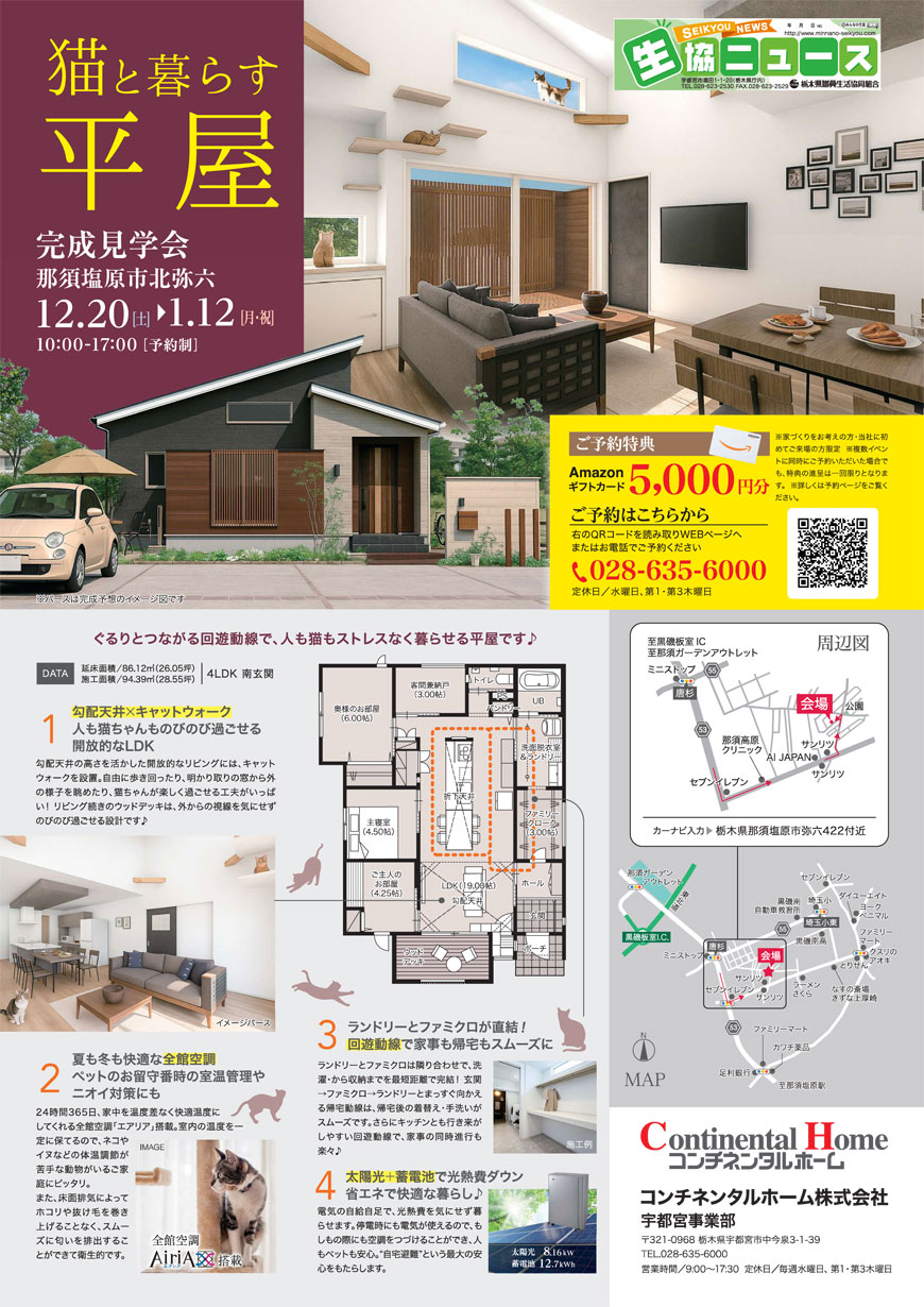 コンチネンタルホーム 猫と暮らす平屋見学会 他ご案内。