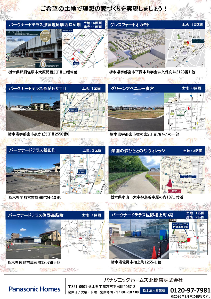 パナソニックホームズ北関東より3月の住宅分譲地のお知らせ