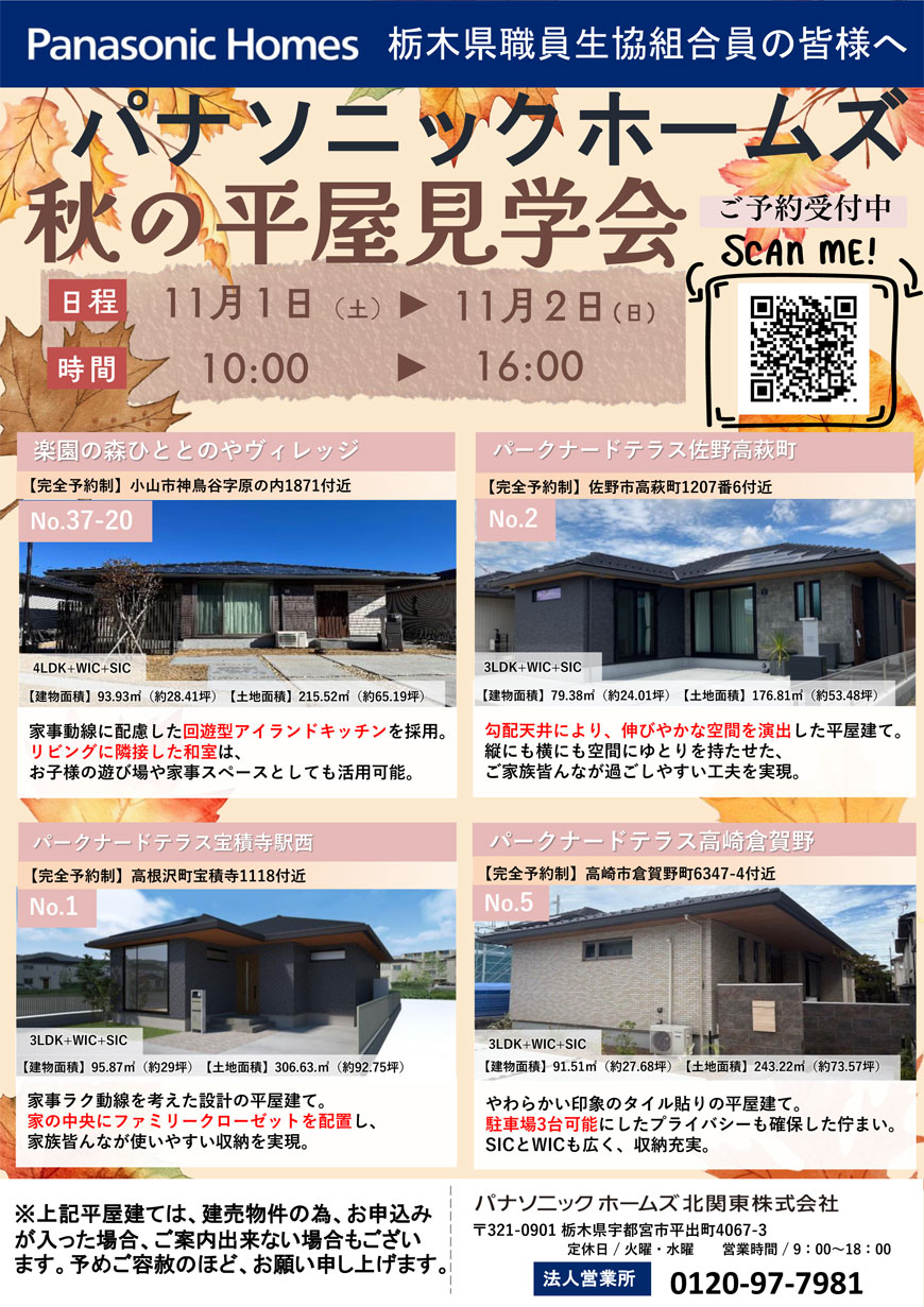 パナソニックホームズ北関東 11/1(土)〜11/2(日)秋の平屋見学会のお知らせ