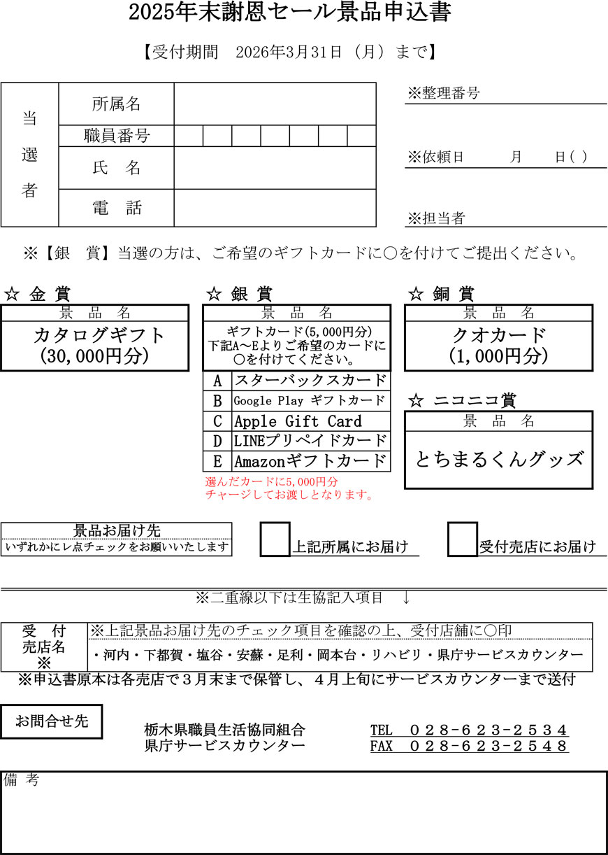 Copyright (C) 2007 栃木県職員生活協同組合 All Rights Reserved.